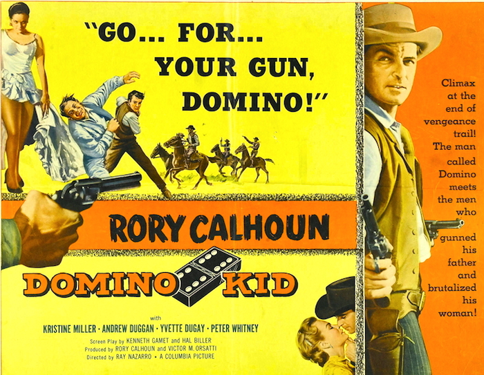 Domino Kid is a 1957 American Western film directed by Ray Nazarro and written by Kenneth Gamet and Hal Biller. The film stars Rory Calhoun, Kristine Miller, Andrew Duggan, Yvette Dugay, Peter Whitney and Eugene Iglesias. The film was released in October 1957, by Columbia Pictures.[1][2][3]