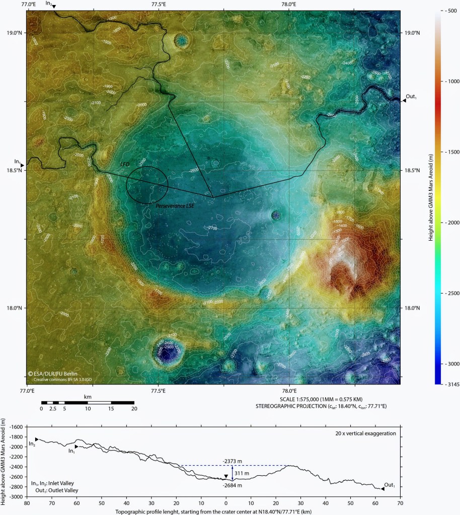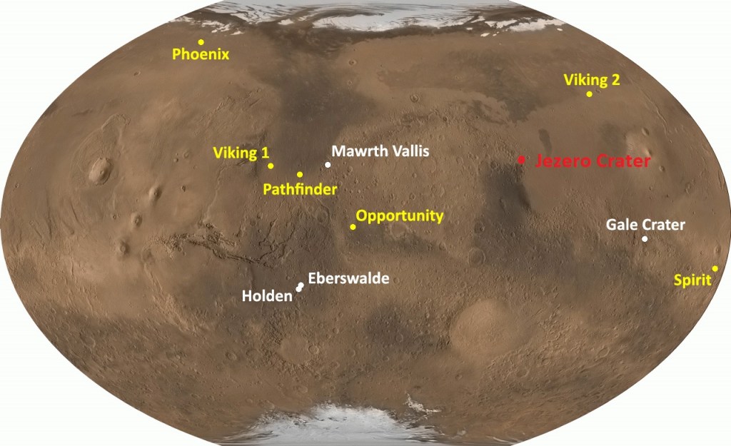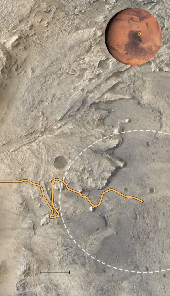 Jezero Crater tells a story of the on-again, off-again nature of the wet past of Mars. Water filled and drained away from the crater on at least two occasions. More than 3.5 billion years ago, river channels spilled over the crater wall and created a lake. Scientists see evidence that water carried clay minerals from the surrounding area into the crater after the lake dried up. Conceivably, microbial life could have lived in Jezero during one or more of these wet times. If so, signs of their remains might be found in lakebed sediments.