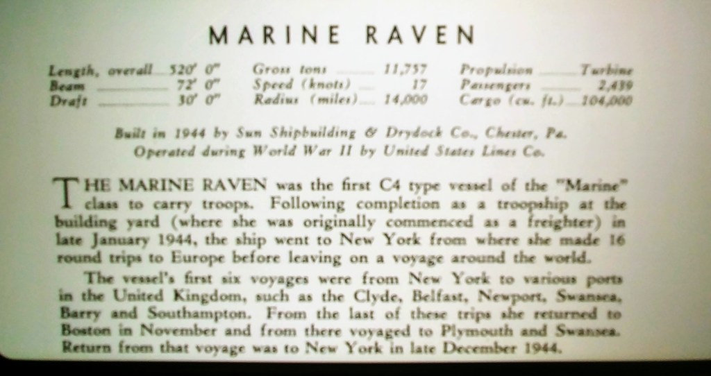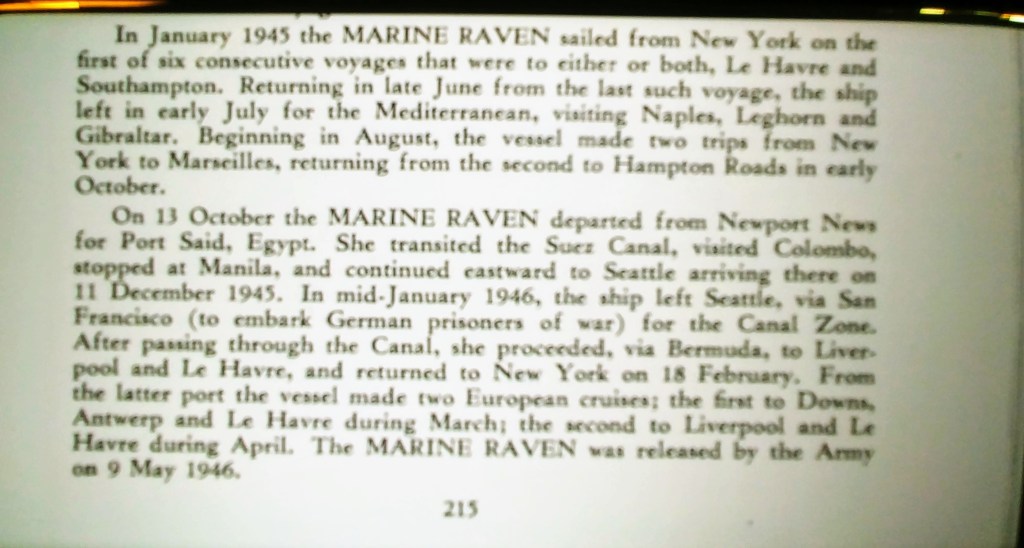 In January 1945 the MARINE RAVEN sailed from New York on the
