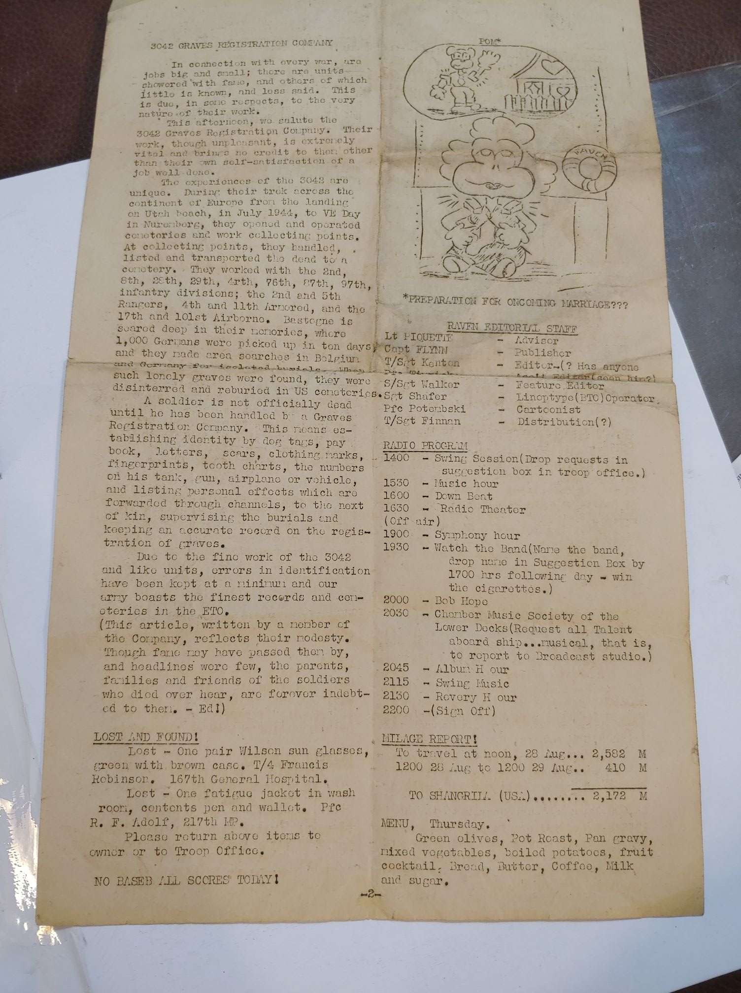 Michael “Mike” Brown served in the United States Navy during WWII onboard TROOPSHIP “MARINE RAVEN” He was a RD3?