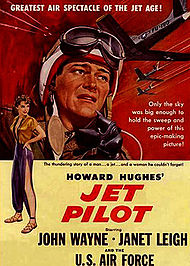 Jet Pilot, a Hughes pet production launched in 1949. Shooting wrapped in May 1951, but it was not released until 1957 due to his interminable tinkering. RKO was by then out of the distribution business. The movie was released by Universal-International.[175]