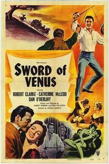Sword of Venus is a 1953 American adventure film directed by Harold Daniels, written by Jack Pollexfen and Aubrey Wisberg, and starring Robert Clarke, Catherine McLeod, Dan O’Herlihy, William Schallert and Marjorie Stapp. It was released on February 20, 1953, by RKO Pictures. It was also released in the U.K. as The Island of Monte Cristo.[1][2][3]