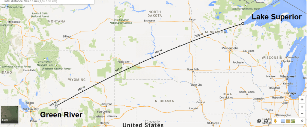 1,181 mi-Distance from Green River, Wyoming to Lake Superior