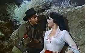 A short time later, they break a wheel, wreck the stage and the team of horses run off. The passengers take refuge in a dry creek gully but their precautions do not protect them from Cheyenne attack, during which Chester is killed, his bag full of fool’s gold. A full-scale rifle battle ensues after which the Indians wait in the rocks above while the stranded travelers begin to feel the effects of thirst.