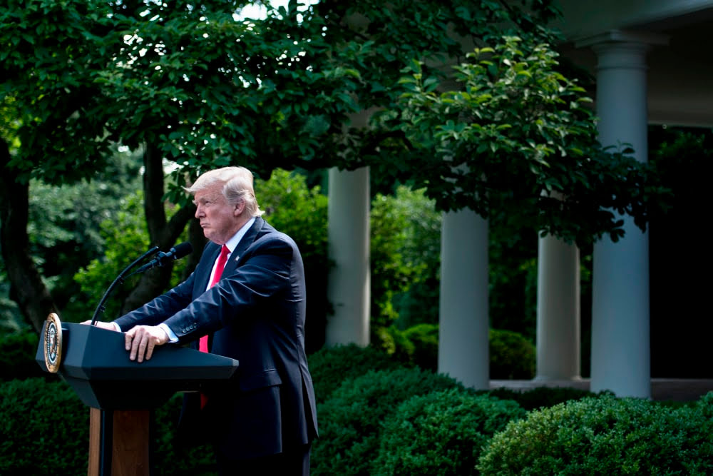 President Donald Trump announces his decision to withdraw the U.S. from the Paris Climate Accords in the Rose Garden of the White House in 2017.