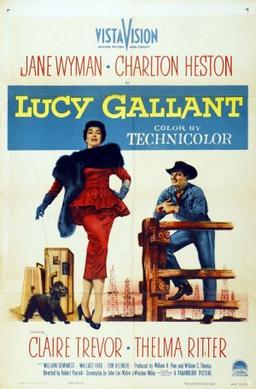 Lucy Gallant is a 1955 American drama film directed by Robert Parrish and written by John Lee Mahin and Winston Miller. The film stars Jane Wyman, Charlton Heston, Claire Trevor, Thelma Ritter, William Demarest and Wallace Ford.[2][3][4] The film was released on October 20, 1955, by Paramount Pictures.[5]