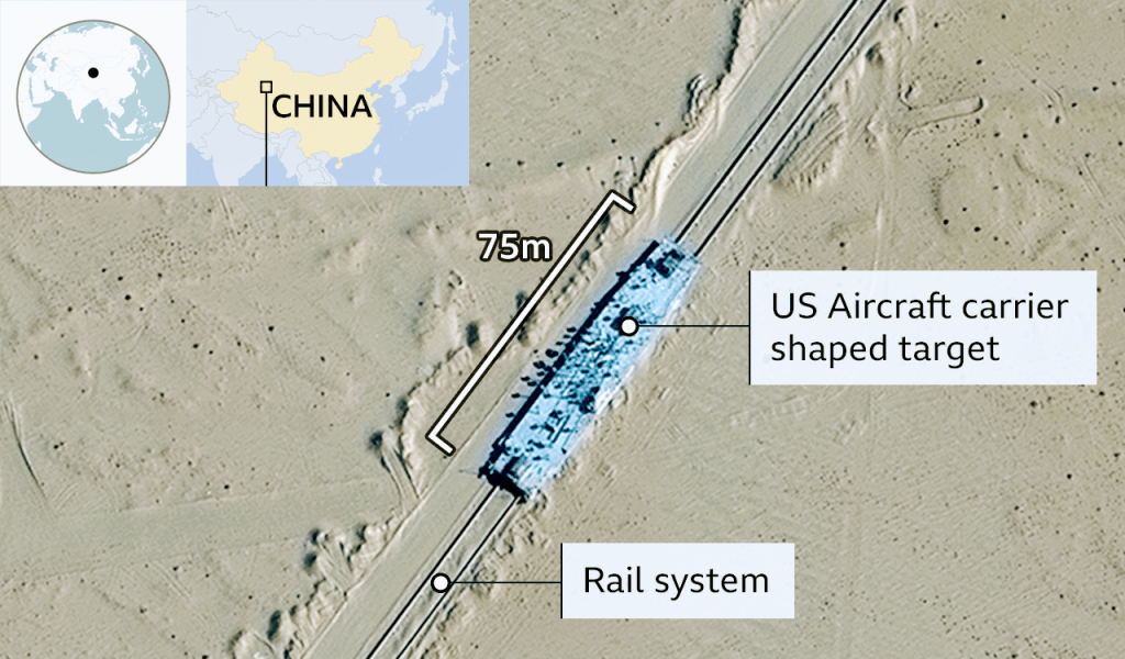 That’s a Mock-Up of an actual USS AIR CRAFT CARRIER. In the Chinese Desert! So the Chinese Military can Practice On.