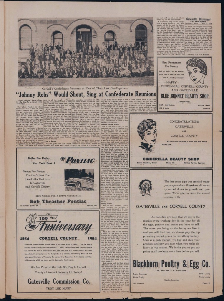 1. S. J. Nettles; 2. M.A.Bland; 3. B.P. ?; 4. ? Worthington; 5. ?; 6. B.T. Blacklock; 7. T.G.Ross; 8. J.S.Holt; 9. ? White; 10. Master Parker White(child); 11. C.C.Moore; 12. W.H. Morgan; 13. Jno. P. Kendrick; 14. J.R.Brown; 15. Dr.W.E.Brown; 16. J.C.Jones; 17. Jno. H. Wigington; 18. G. M. Sargent; 19. W.T.Priddy; 20. W. N. Bates; 21. ? ; 22. Chas. Hodges; 23. J.W.Lewis; 24. J. C. Chambers; 25. O.J.Wollard; 26. Master Wollard (child); 27. ? ; 28. ? McCorkle; 29. V.F.Roper; 30. S.W.Fletcher; 31. J.E.Gober; 32. Frank Martin; 33. J.C.Newsome; 34. J.W.Gideon; 35. J.M.Robinson; 36. D.R.La…?; 37. H.L.Stevenson; 38. S.A.Peeler; 39. Jno. T. Grant; 40. ? McMinn; 41. J.K.P.Yeary; 42. F.M.Jones; 43. R.L. Suggs; 44. E.L.Lawrence; 45. ?; 46. J.M. Brown; 47. A.F.Smith; 48. J.C.Harper; 49. ? Moore; 50. J.M.Shults; 51. Jno. Lane; 52. S.J.Parks; 53. A.D.Dickson; 54. H.C.McDaniels; 55. Joe Cox; 56. ? Jackson; 57. Tom Scott; 58. J.W.Sherrill; 59. A.J.Bone; 60. D.R.Franks; 61. ? Osborne; 62. B.M.Wolf; 63. ? Herrington; 64. Jas. Dickey; 65. ?; 66. Jno D. Morgan; 67. R.E.Gaston 68. B.F.Courtney 69. B.W.Honeycut 70. Jno. Schley 71. ? ; 72. U.Everetts; 73. ?; 74. Henry Mayberry; 75. J. H. Jones; 76. N. Beaver; 77. ?; 78. S.J.Pearson; 79. E.N. Newton; 80. W.A.Barefoot; 81. ?; 82. A.D.George; 83. J.E. Stockburger; 84. W.F.Routh; 85. Curtis Greene; 86. W.H.Hawkins; 87. W.A.McBeth; 88. Jas. Scott; 89. A.H. Gregory; 90. N.R.Altum; 91. E.R.Biddy; 92. R.J.Glass; 93. J. H. Kimbrough; 94. W.P. Stovall; 95. J.L.McNeil; 96. R.H. Washburn; 97. ? Dodd; 98. Henry White; 99. I. C. Puckett; 100. ? Bray; 101. Jim Sargent; 102. J.M.Savil; 103. J.P.Cox; 104. W.R.Robinson; 105. Joe Troller; 106. J.F.Smith; 107. T.J.Stephenson; 108. M.E.Dyson; 109. T.T.Crow; 110. E. Barr; 111. S.A.Hood; 112. Geo T. Moore; 113. R. Price; 114. W.J. Barkley; 115. Dave Russell; 116. F.O. Bertrand; 117. J.R. Bertrand; 118. B.F.Miller; 119. R.E.Lovejoy; 120. H.C.Thomas; 121. A.R.Allen; 122. Jim Autrey; 123. R.B.Ash; 124. G.J.Joiner; 125. R.Bass; 126. G. Cummins; 127. Henry Franks.