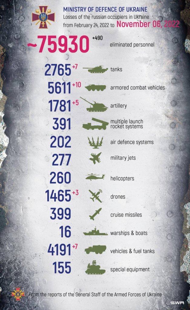 The Defence of Ukraine’s Daily Report is now a Shocking Reminder if what Russia has Lost and should be a strong inducement for Russia to End this War. But it apparently isn’t. Would it be enough for you r Leaders?