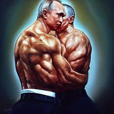 Old God, New God. The farewell hug…And God Putin kicked the other God to Hades and brought Satan to help him run Heaven.