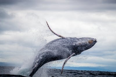 Whale: breaches from ocean And I am the gentle giant of the sea, the enormous whale.