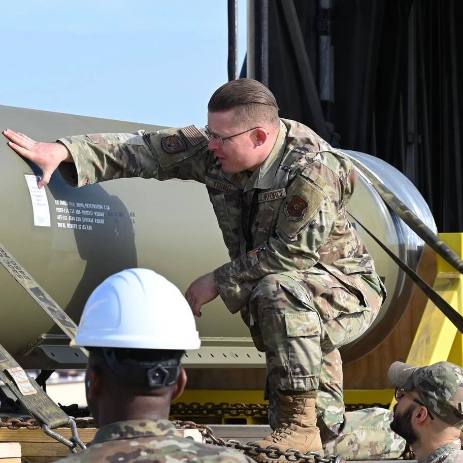 In the case of the GBU-57, the Tritonal explosive in the rear section of the bomb is used to create a high-explosive blast, while the shaped charge in the nose is used to direct that blast in a specific direction, enhancing the penetrative power of the bomb. The combination of theseexplosive types in the GBU-57 Massive Ordnance Penetrator (MOP) serves to enhance the bomb’s ability to penetrate deeply into hardened and deeply-buried targets.