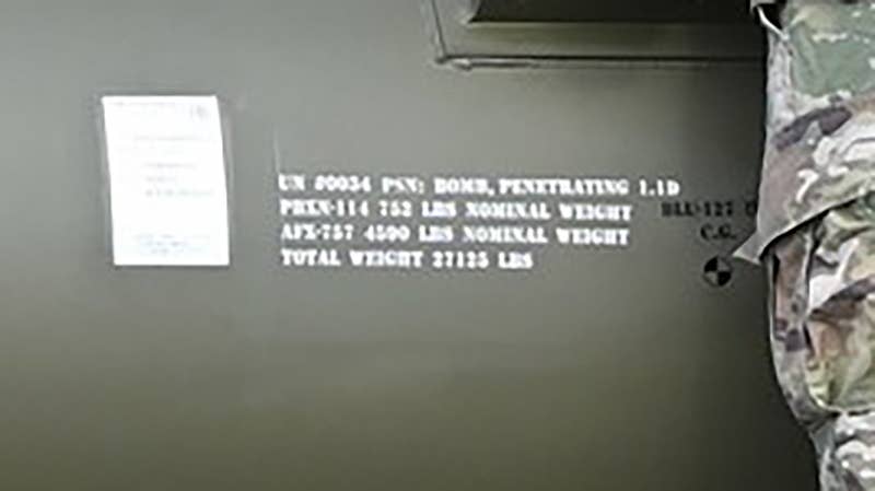 The GBU-57 Massive Ordnance Penetrator (MOP) is a bunker-busting bomb that is generally used to destroy deeply buried underground bunkers or facilities. The GBU-57 uses two types of explosive materials, which work together to create a highly effective explosive charge: