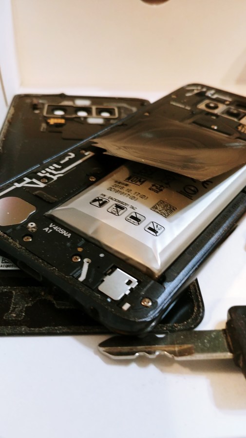 You reach over and pick up your Cell Phone and suddenly, it Bursts Open on one side. Blows the Protective Housing Split Open. The Above Picture is my cell phone with the Back Cover off showing the Swollen Battery(LG BL-T37) on my LG V40 ThinQ. Pretty isn’t it? No, it’s absolutely not pretty at all. The phone is Busted as all get out now. And it’s in a very dangerous State of Being. It can still explode! Cause a Fire!