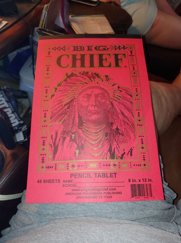 See the cubby hole for your writing pad. Pencils were on the Teachers Desk in a Can holding them.. And she would count them at the end of each day.. This was your Writing Desk and you wrote on your Big Chief Writing Tablet like this one I have-