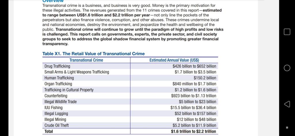 It doesn’t take a prudent person to figure it all out. The screenshots I now am sharing are from a Report released in 2017. And that was six years ago and things that you will now View have increased by 66% by 2023. Which almost doubly increases the reasons Of why there is such a LAX in dealing with the Cartels. It’s MONEY! Mind boggling amounts.