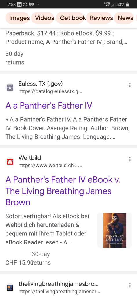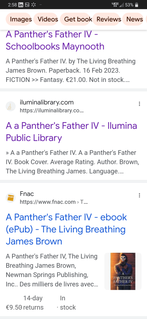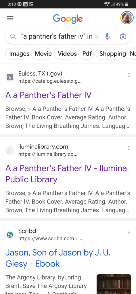 A PANTHER’S FATHER IV is in Libraries. Is yours one of them? October 8, 2023 Talk about a book growing in popularity… Share this: Click to share on X (Opens in new window) X Click to share on Facebook (Opens in new window) Facebook Like Loading... Related