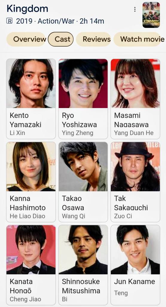 Kingdom is a 2019 Japanese live-action war movie based on the manga series of the same name by Yasuhisa Hara. It stars Kento Yamazaki, Ryo Yoshizawa, and Masami Nagasawa, and is available to watch on Netflix and Amazon Prime Video
