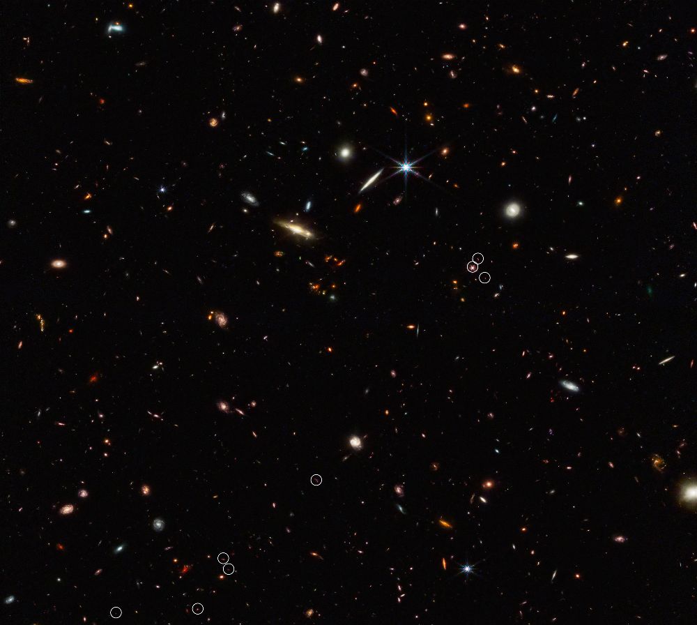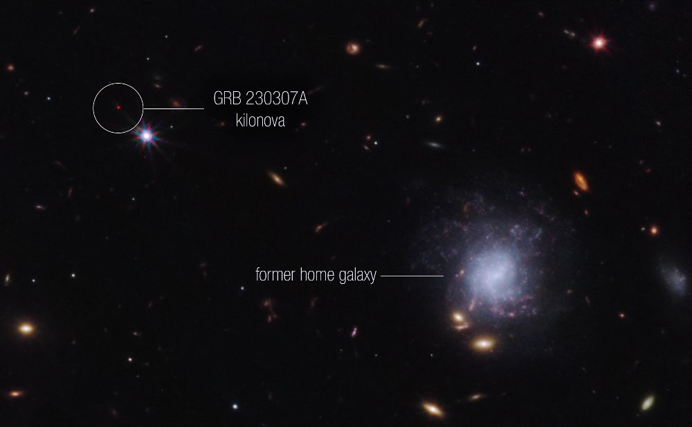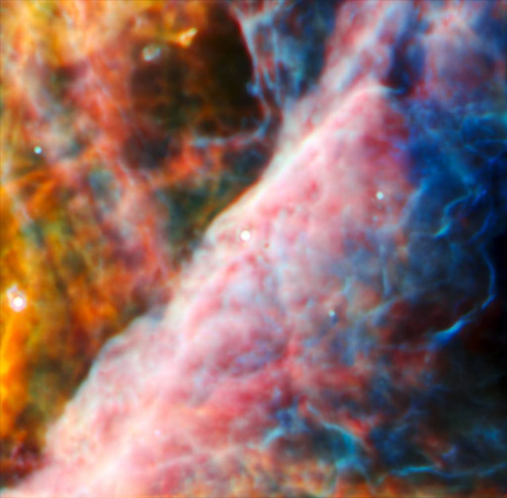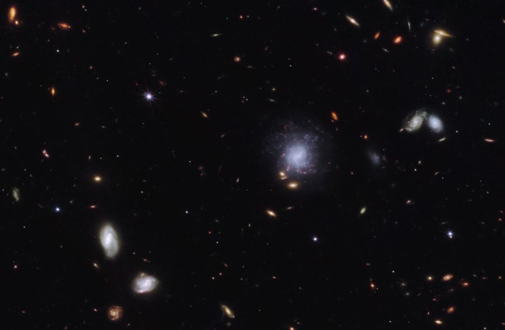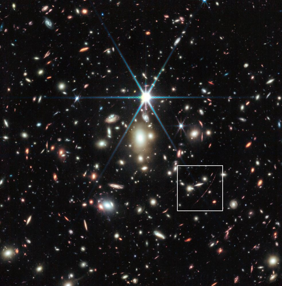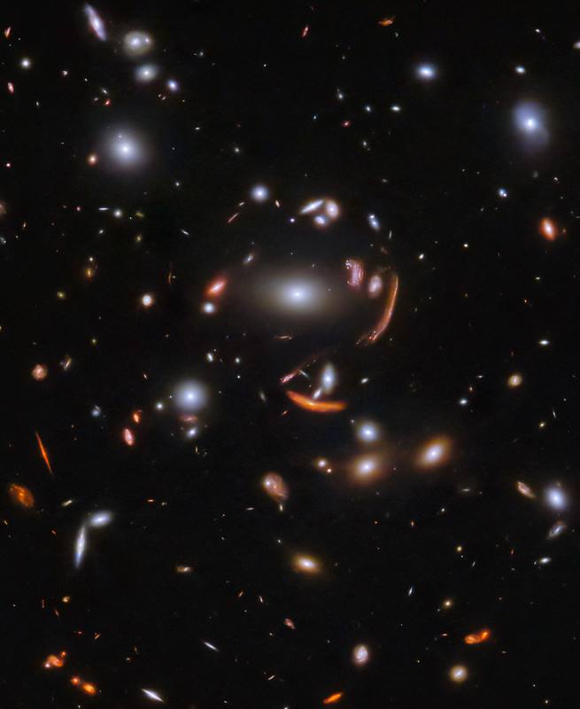 The vast galaxy cluster SDSS J1226+2152 in the constellation Coma Berenices is distorting the images of distant background galaxies into streaks and smears of light in this image from the NASA/ESA/CSA James Webb Space Telescope. This is a spectacular example of gravitational lensing, a phenomenon which occurs when a massive celestial object such as a galaxy cluster deforms spacetime and causes the path of light from more distant galaxies to be deflected, almost as if a monumental lens was redirecting it. This image is from a set of early science observations with Webb. One of the most notable lensed galaxies in this rich field is named SGAS J12265.3+215220. In this image, it’s the innermost lensed galaxy, just above and to the right of the central galaxy. This lies far beyond the foreground cluster in distance, giving us a view into the galaxy roughly two billion years after the big bang. Astronomers are now using this eagerly-awaited hoard of bright, gravitationally-lensed galaxies from Webb to explore star formation in distant galaxies. Just like their optical namesakes, gravitational lenses can magnify as well as distort distant galaxies. This allows astronomers to observe the finer details of galaxies that would usually be too distant to clearly resolve. In the case of SGAS J122651.3+215220, the combination of gravitational lensing and Webb???s unprecedented observational capabilities will allow astronomers to measure where, and how fast, stars are forming and also to gain an insight into the environments which support star formation in lensed galaxies. Amid this spectacular display of gravitational lensing, a menagerie of spiral and elliptical galaxies in all shapes and sizes surround the galaxy cluster. Webb???s sensitive infrared instruments have proven prodigious in picking out distant galaxies from the darkness of space. None of the tiny pinpricks in the patch of sky captured here is a star: each one is a galaxy. The variety of colours of the small, dim galaxies gives us hints at what we are seeing: many of the paler white galaxies will date back to the period of intense star formation known as cosmic noon, some two to three billion years after the big bang, while the few small orange and red systems are probably from even earlier in the Universe’s history. [Image Description: A cluster of galaxies. Most of the visible galaxies are oval-shaped and smooth. A few have spiral arms in various orientations. The largest galaxy is directly in the centre, and close by it are several images of background galaxies, stretched and warped into long arcs by gravitational lensing. The background is black and contains many very small galaxies, but no stars.]Links Pan of galaxy cluster SDSS J1226+2152This new Picture of the Month from the NASA/ESA/CSA James Webb Space Telescope reveals intricate details of the Herbig Haro object 797 (HH 797). Herbig-Haro objects are luminous regions surrounding newborn stars (known as protostars), and are formed when stellar winds or jets of gas spewing from these newborn stars form shockwaves colliding with nearby gas and dust at high speeds. HH 797, which dominates the lower half of this image, is located close to the young open star cluster IC 348, which is located near the eastern edge of the Perseus dark cloud complex. The bright infrared objects in the upper portion of the image are thought to host two further protostars. This image was captured with Webb???s Near-InfraRed Camera (NIRCam). Infrared imaging is powerful in studying newborn stars and their outflows, because the youngest stars are invariably still embedded within the gas and dust from which they are formed. The infrared emission of the star???s outflows penetrates the obscuring gas and dust, making Herbig-Haro objects ideal for observation with Webb???s sensitive infrared instruments. Molecules excited by the turbulent conditions, including molecular hydrogen and carbon monoxide, emit infrared light that Webb can collect to visualise the structure of the outflows. NIRCam is particularly good at observing the hot (thousands of degree Celsius) molecules that are excited as a result of shocks. Using ground-based observations, researchers have previously found that for cold molecular gas associated with HH 797, most of the red-shifted gas (moving away from us) is found to the south (bottom right), while the blue-shifted gas (moving towards us) is to the north (bottom left). A gradient was also found across the outflow, such that at a given distance from the young central star, the velocity of the gas near the eastern edge of the jet is more red-shifted than that of the gas on the western edge. Astronomers in the past thought this was due to the outflow???s rotation. In this higher resolution Webb image, however, we can see that what was thought to be one outflow is in fact made up of two almost parallel outflows with their own separate series of shocks (which explains the velocity asymmetries). The source, located in the small dark region (bottom right of centre), and already known from previous observations, is therefore not a single but a double star. Each star is producing its own dramatic outflow. Other outflows are also seen in this image, including one from the protostar in the top right of centre along with its illuminated cavity walls. HH 797 resides directly north of HH 211 (separated by approximately 30 arcseconds), which was the feature of a Webb image release in September 2023. [Image Description: In the lower half of the image is a narrow, horizontal nebula that stretches from edge to edge. It is brightly coloured with more variety on its right side. In the upper half there is a glowing point with multi-coloured light radiating from it in all directions. A bright star with long diffraction spikes lies along the right edge, and a few smaller stars are spread around. The background is covered in a thin haze.] Links Video:??Pan of HH 797Streaks of light and bright arcs betray the pre