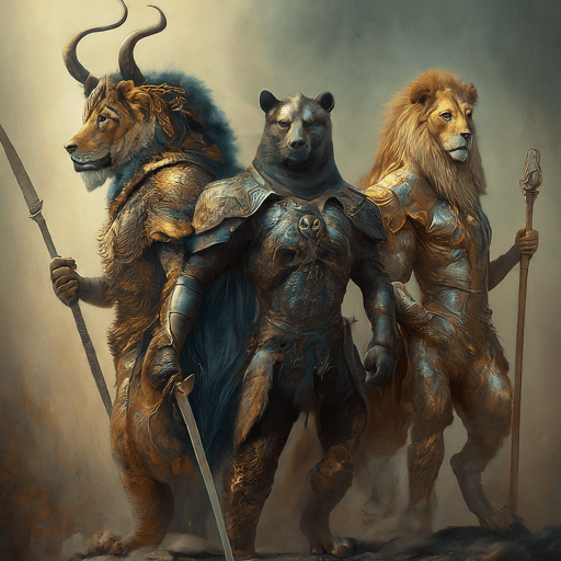 From the north, a graceful, ethereal nymph with a bow of moonlight emerged. And from the south, a wizened, ancient tree spirit, its roots reaching deep into the earth, appeared.