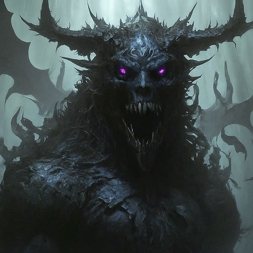 Suddenly, a chilling laugh echoed through the room. A figure materialized from the shadows, tall and imposing, with skin as black as night and eyes that burned with malevolent crimson light. It was Azrael, a demon known for his cunning and cruelty.