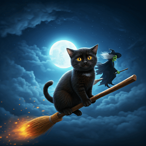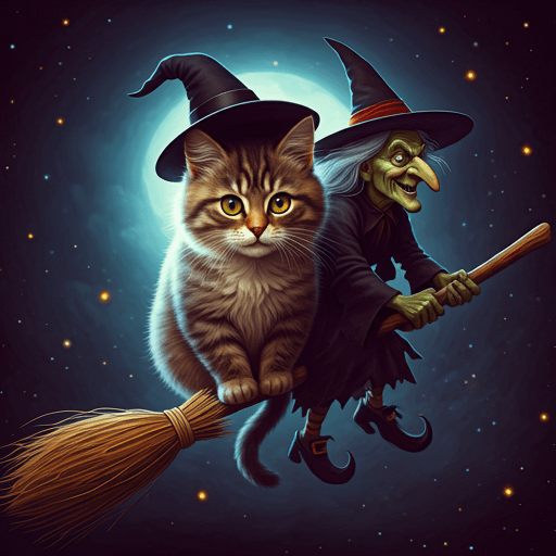Heart pounding with a thrilling mix of excitement and apprehension, Willow mounted her trusted broom, her loyal black cat, Midnight, curled up snugly in her arms. With a flick of her wrist, she soared into the starlit sky, the silver moon casting an ethereal glow on her determined face.