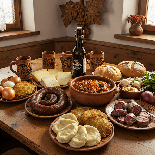 - Meat: Pork, beef, and poultry are widely consumed. Sausages, especially “Kranjska klobasa” (Carniolan sausage), are a national delicacy. Stews and soups with meat are also common, like “golaž” (goulash) and “obara” (a meat and vegetable stew).