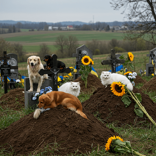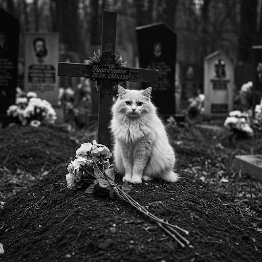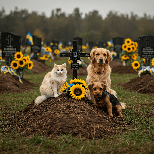 Cat in Ukraine Cemetery. Missing someone killed by unrelenting war.
