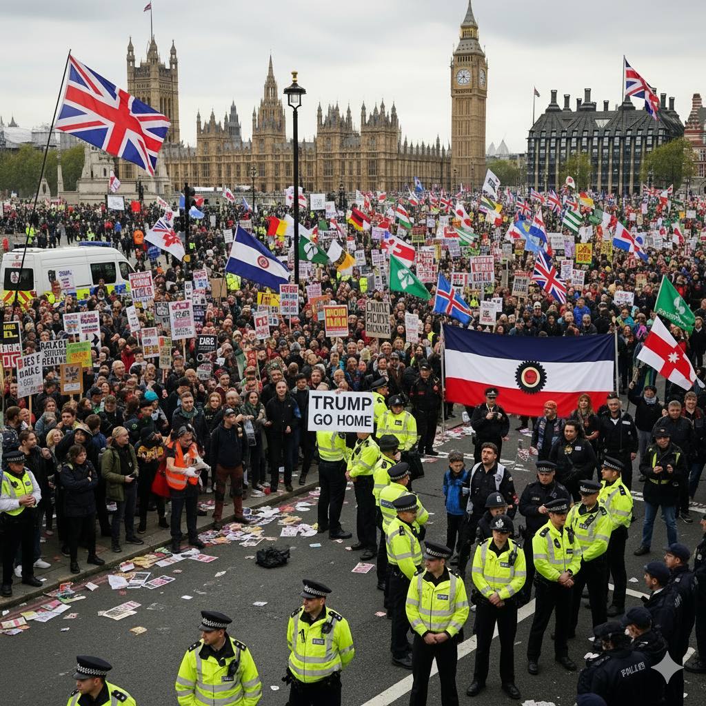 - Counter-Protest: A rival demonstration, the “March Against Fascism,” organized by Stand Up To Racism, also took place, attracting around 5,000 participants.6 There were reports of projectiles being thrown between the two groups.7