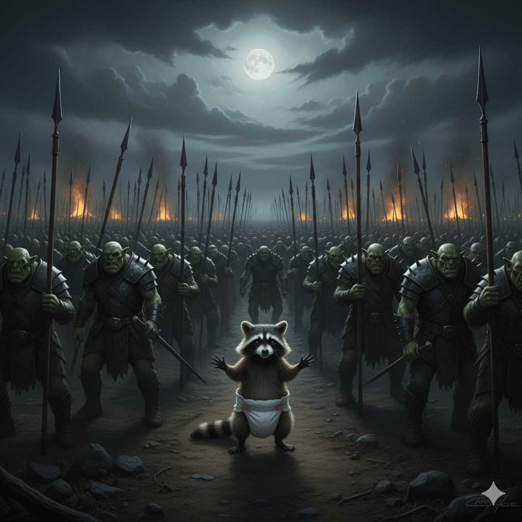 But they weren’t foiled. They tarred and feathered Trump and rode him out on a rail. Especially after Raccoon Boy climbed up and onto a Fighter Jet to give the Pilot the Trump Loyalty Test