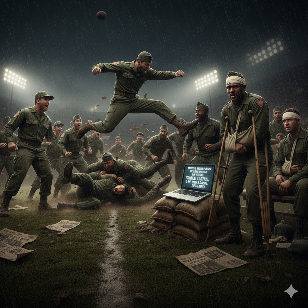 During the mid-1970s, the U.S. Army’s 2nd Infantry Division at Camp Casey in South Korea adopted a brutal, no-holds-barred game called “combat football” in part to reduce racial tensions and suppress drug use among soldiers. The game was introduced by Major General Hank Emerson, the division’s commander, who implemented extreme training and recreation to improve morale and discipline in a unit plagued by issues following the Vietnam War.