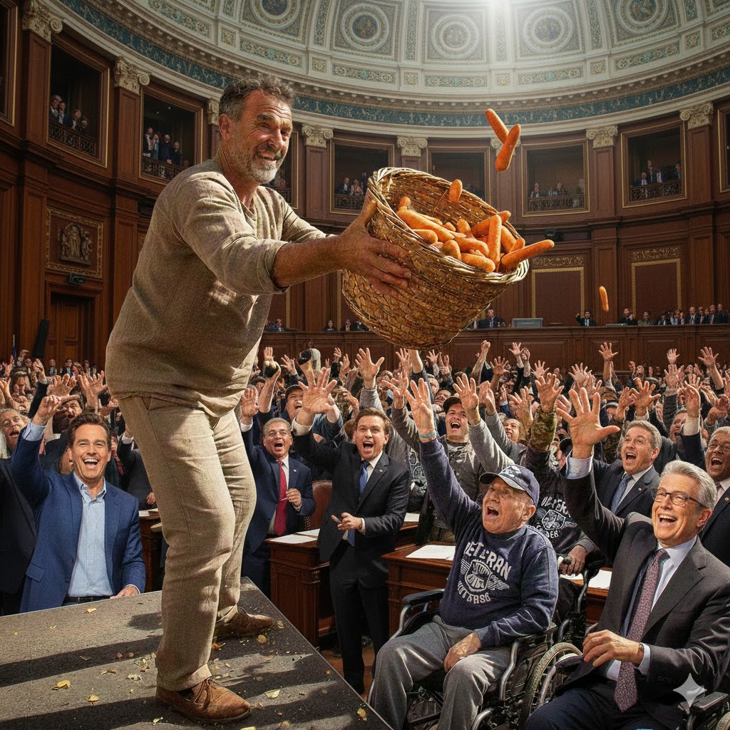 “We can see you just fine, Barnaby,” the man said, dropping the carrots at the billionaire’s feet. “We see that you have nothing else to give. You’re just a man with a lot of orange sticks. We’re going to the market to trade for some eggs and a bit of wool. Keep your vision.”