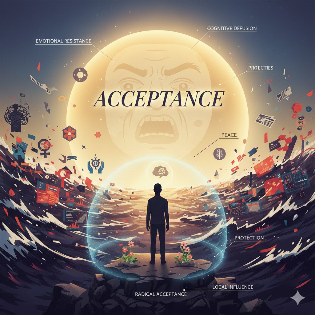 Accepting the “unacceptable” is one of the most difficult psychological tasks a person can face.1 Whether in personal life or in the broader political landscape, the process of acceptance is often misunderstood as approval or resignation.2 In reality, it is a tool of psychological survival and strategic clarity.+1