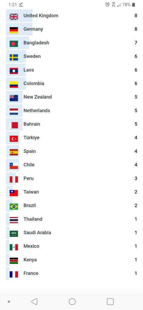 One day, 28 Countries visited my blog. Another day, 32 Countries.