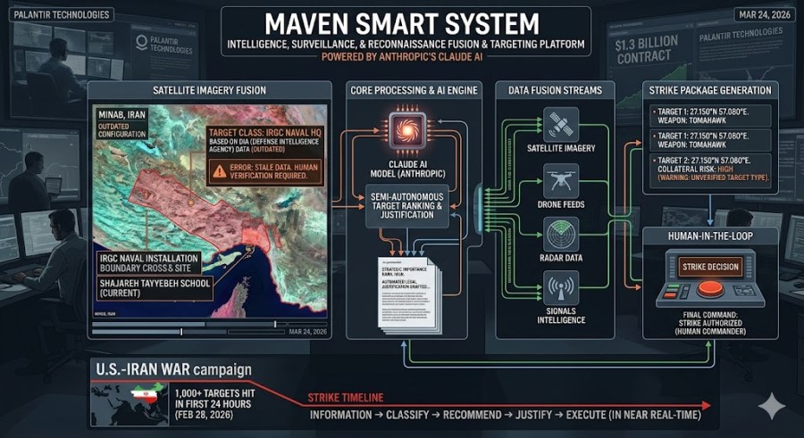 The Pentagon utilized the Maven Smart System (a $1.3 billion platform developed with Palantir) to manage the massive scale of the Iran campaign.