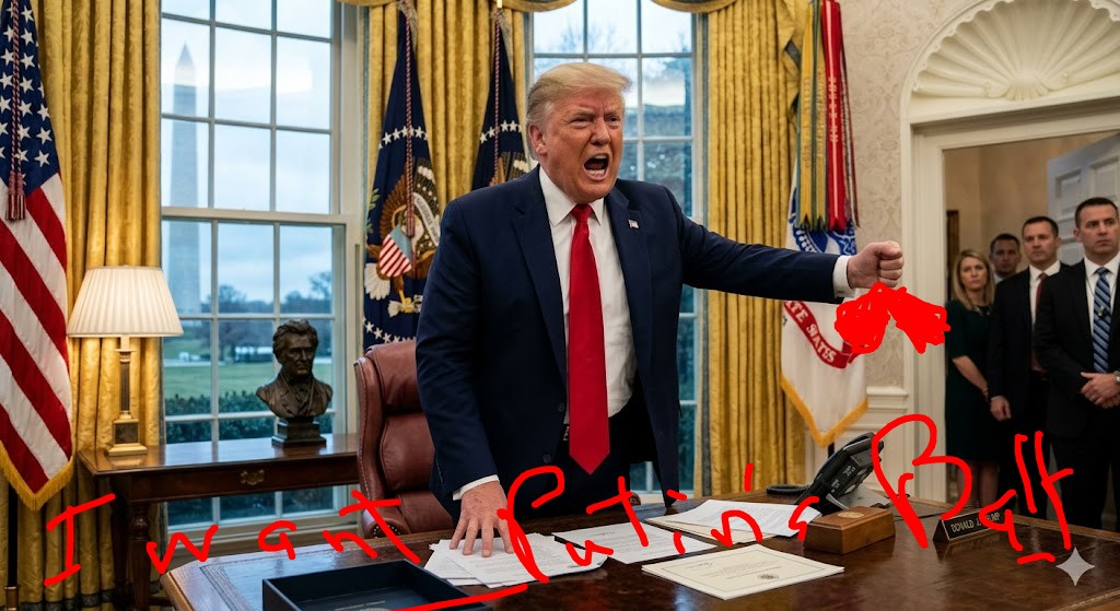 “I want Putin’s Balls. He’s screwing me big time. He’s telling Iran where to attack to make me look bad.”