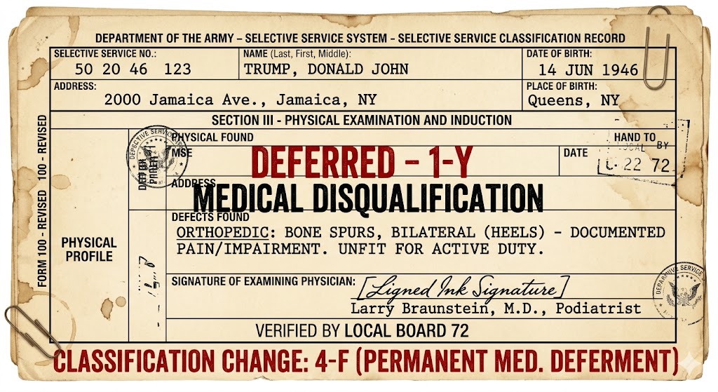 The story of Donald Trump’s bone spurs is less of a medical history and more of a political “ghost story”—it appeared exactly when needed in 1968 and has effectively “vanished” from his physical life ever since, though it continues to haunt his public record.