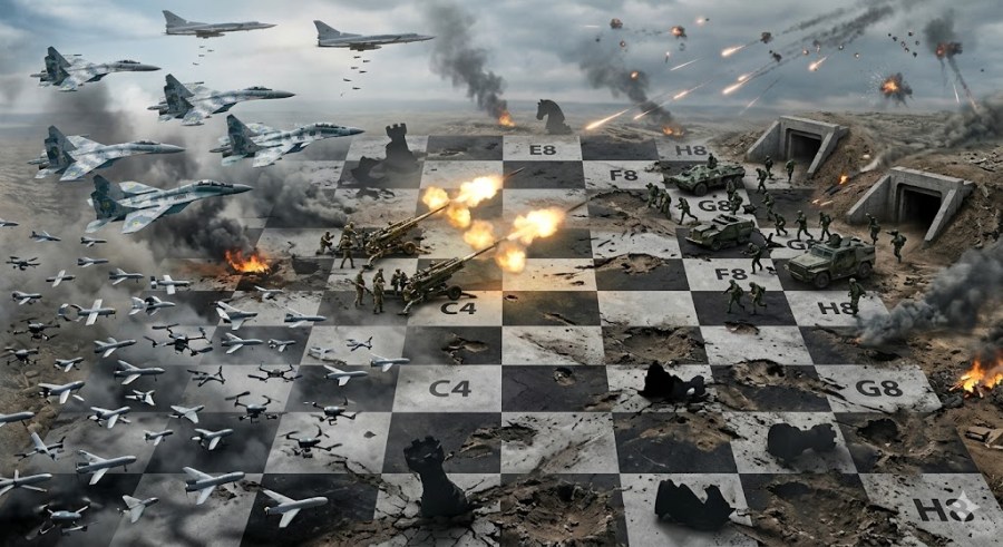 The “Pawns” are no longer sacrificial foot soldiers—they are a ten-to-fifty-thousand-unit Drone Swarm. While the enemy High Command sleeps, the sky turns black with spinning rotors and fixed-wing loitering munitions.