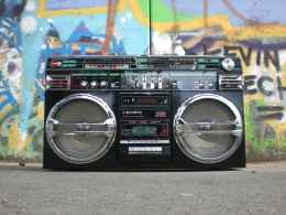 black and silver cassette player
