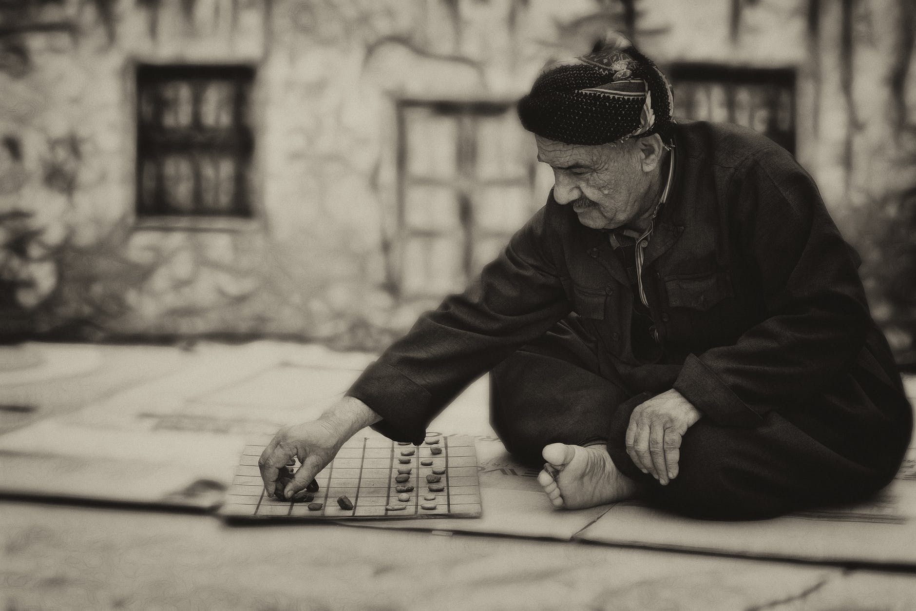 playing board game person old