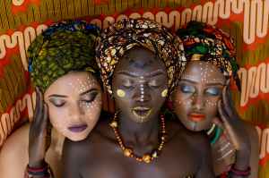 three women wearing turbands