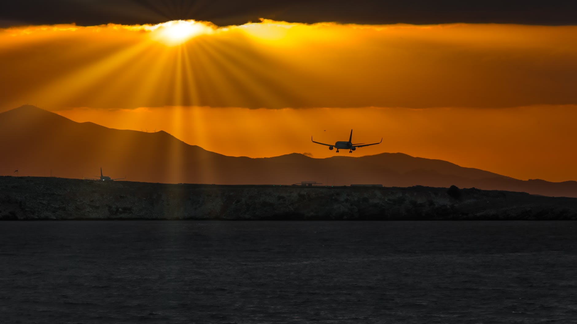 silhouette of airplane over body of water
