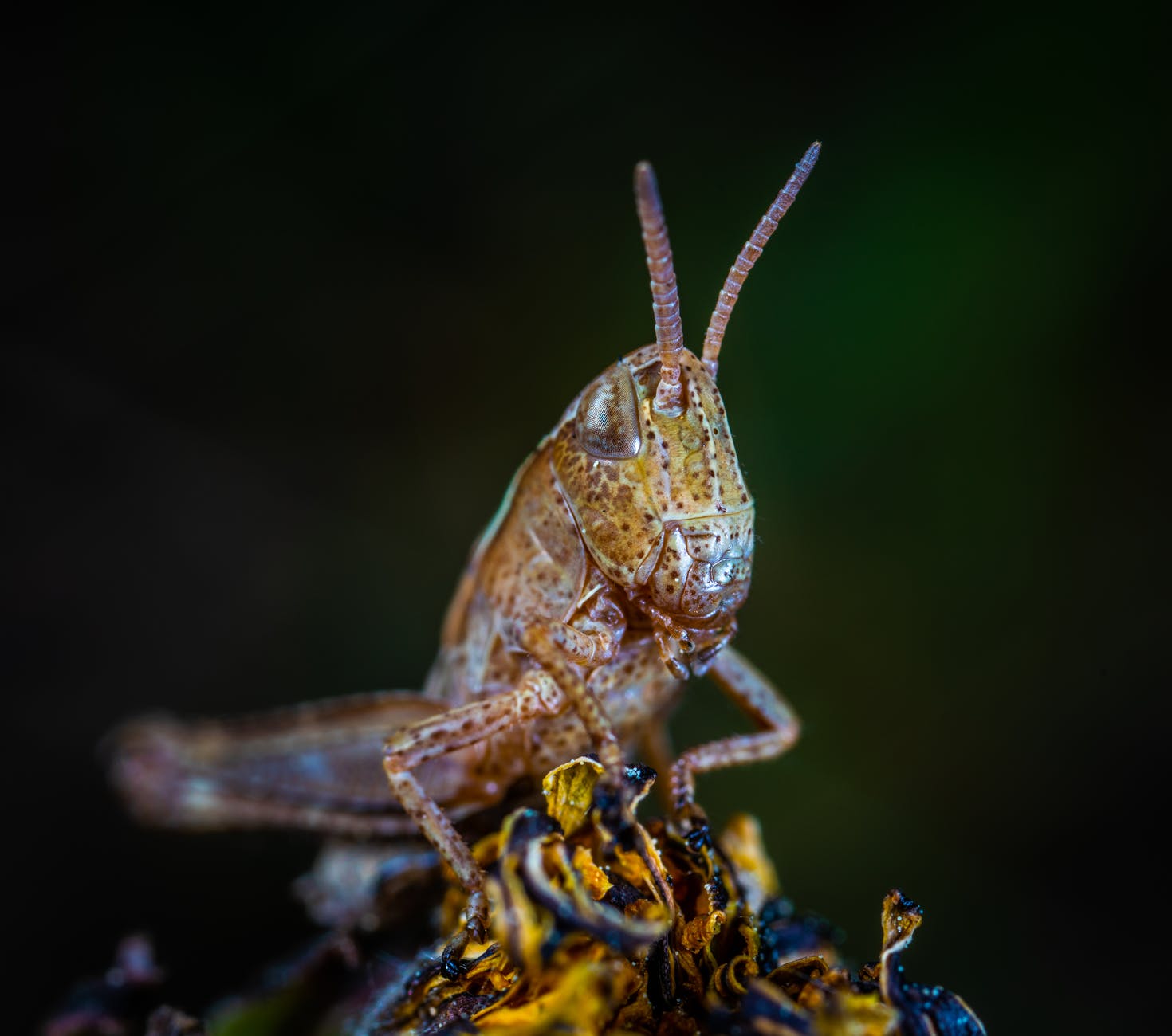 macro photo of brown grasshopper