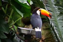 black and white bird on gray concrete bird