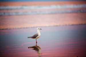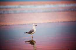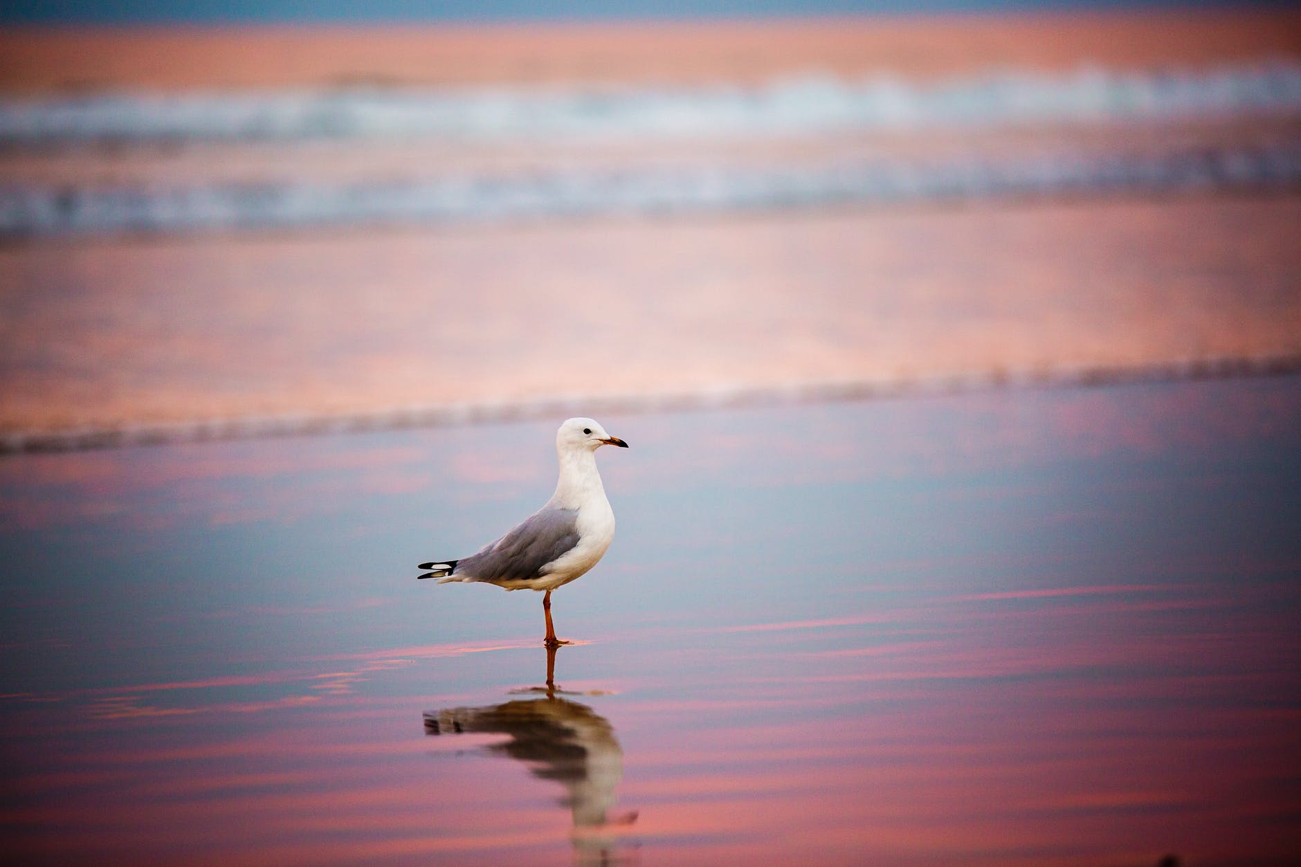 selective focus photography of ring billed gull on shore