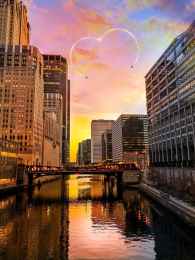 two black aircrafts above buildings golden hour