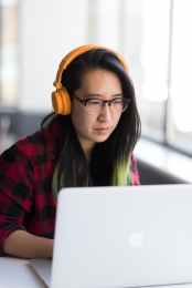 woman infront of macbook