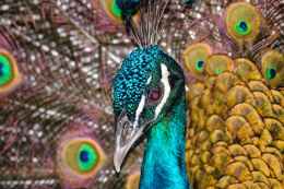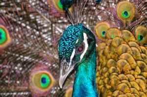 close up view of a peacock head