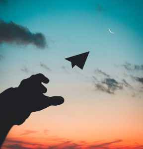 silhouette photo of man throw paper plane