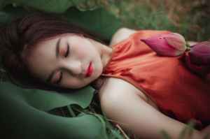 woman lying on green plant
